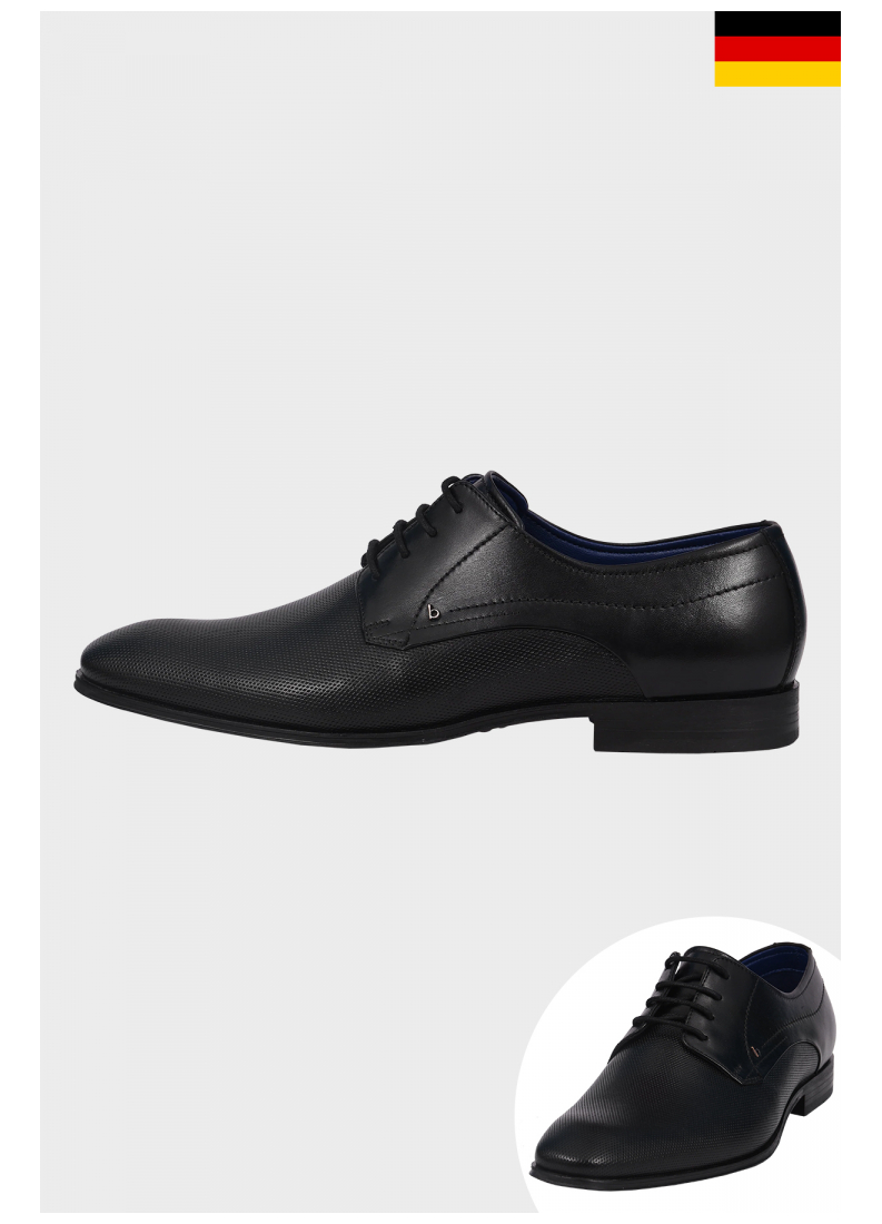 A Mattia II csoportba tartozó, lyukacsos mintával ellátott fekete cipők kifinomult és modern megjelenésűek, és megkülönböztetik őket a klasszikus derby cipőktől. Üzleti ruhatárhoz és formális viselethez egyaránt alkalmasak, ezek a férfi cipők kiváló minőségű bőrből készülnek, figyelmet fordítva a részletekre. Bőr-textil talpbetéttel vannak bélelve, ami egész nap optimális légáteresztő képességet biztosít.