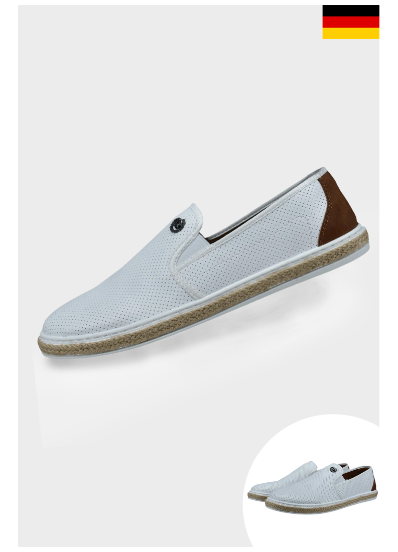 Könnyedén modern, ezek a Bugatti lezser slip-on cipők letisztult fehér sziluettel, barna hátsó részletekkel rendelkeznek. Perforációiknak köszönhetően fokozzák a légáteresztő képességet és stílusos viseletet biztosítanak. Nyári társnak tervezték, a slip-on szabás kényelmét klasszikus esztétikájuk időtlen vonzerejével ötvözik. A tengerparti kirándulásoktól a laza városi sétákig sokoldalúak, és biztosan feldobják szezonális ruhatáradat. Élvezd a kényelmet minden lépéseddel!