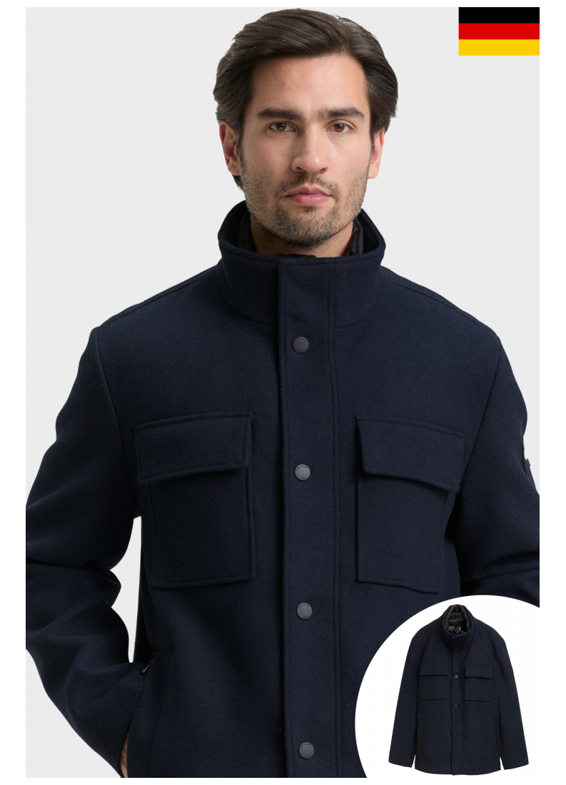 2 az 1-ben gyapjú kabát logós emblémával az ujján és kivehető steppelt kabáttal belül, amely védelmet nyújt a szél és a hideg ellen. Az elülső oldalsó zsebek, a mellkasi zsebek és egy további belső zseb ideálisak a pénztárca, a kulcsok vagy a mobiltelefon tárolásához.