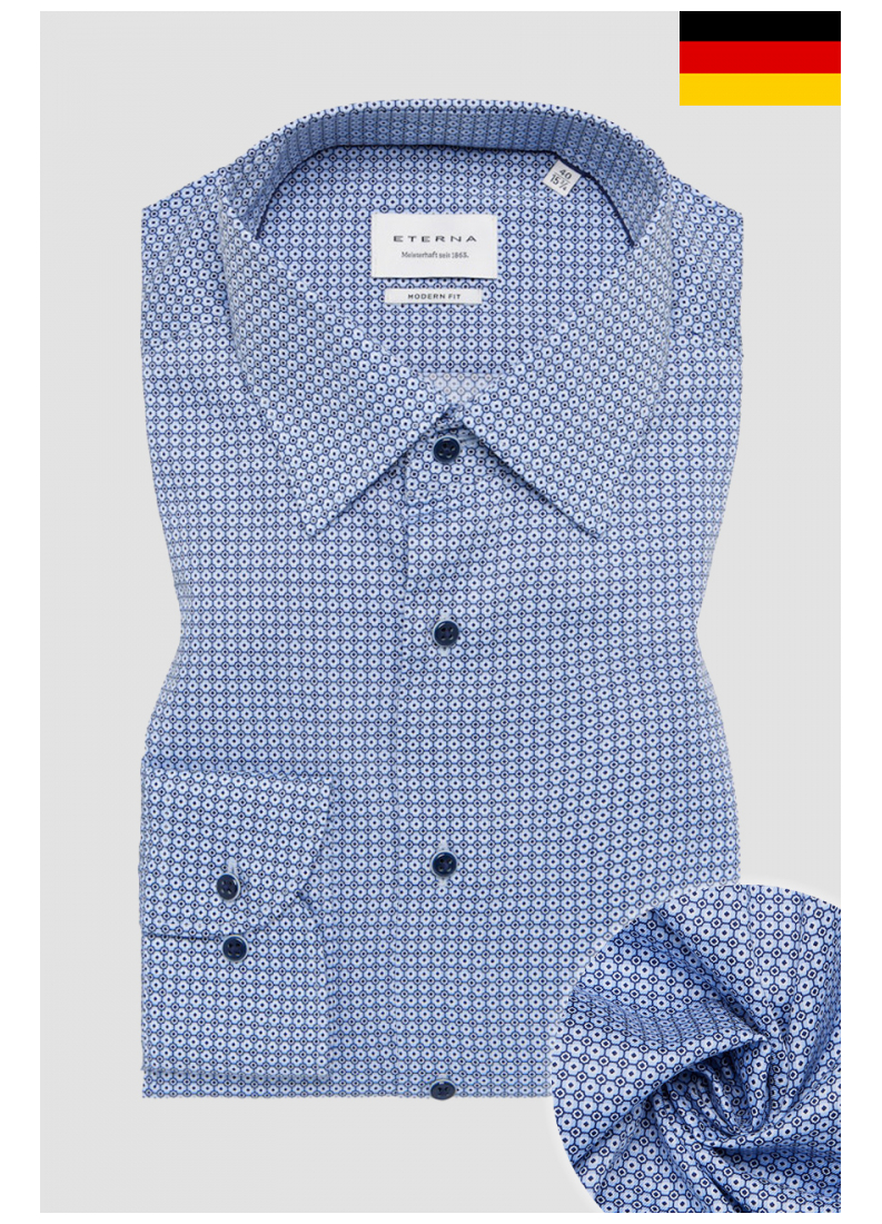 Tapasztalja meg a végső viselési kényelmet ezzel az ETERNA férfi inggel, amely modern MODERN FIT szabásával testre szabott sziluettet kínál. 100% pamutból készült, ez az ing kényelmet és stílust ígér minden alkalomra. A twill minőség nemcsak elegáns megjelenést kölcsönöz az ingnek, hanem tartós és könnyen kezelhető is.