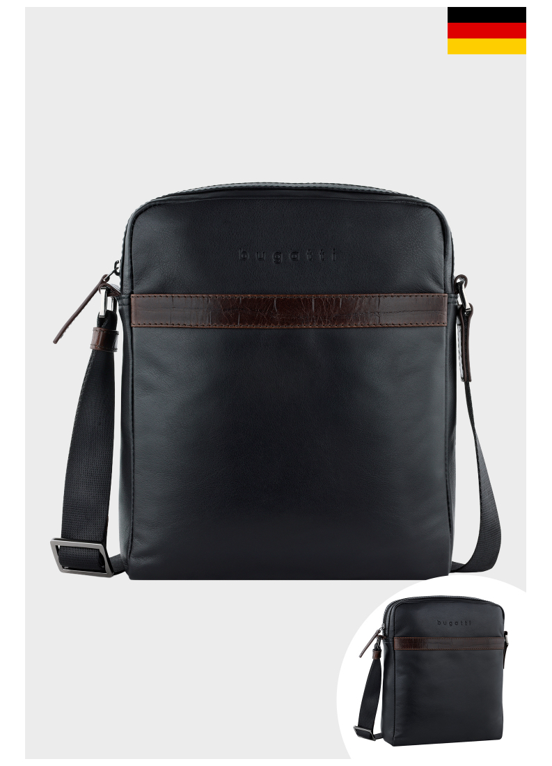 BUGATTI Corso Deluxe 5601, Fekete Bőr Válltáska Big