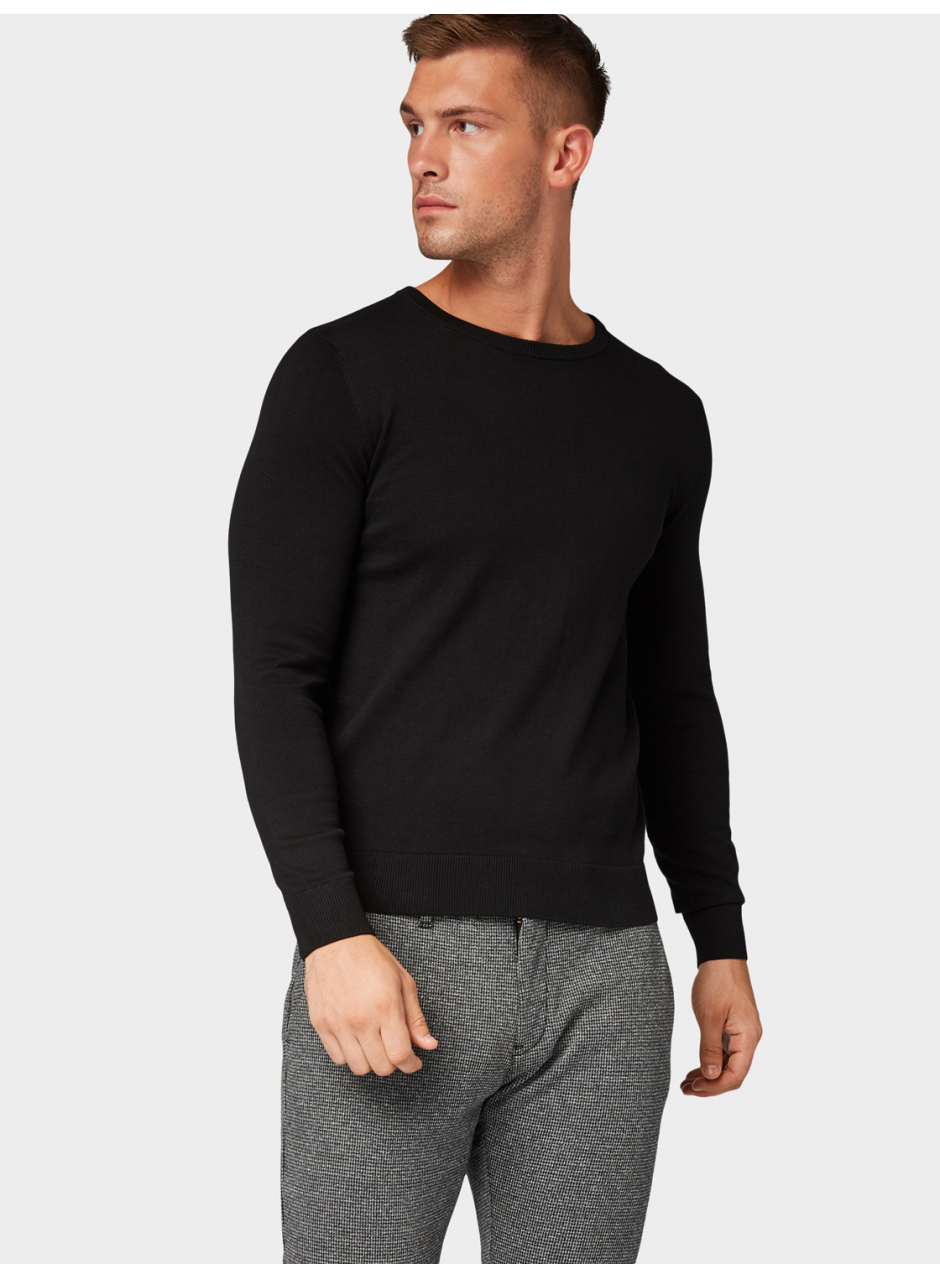 TOM TAILOR Basic O-Neck 2819, Fekete Kötött Pulóver