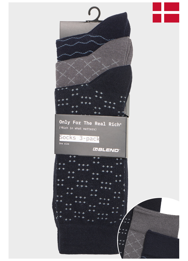 BLEND 6306, Fekete Mintás Zokni Tripla Csomag